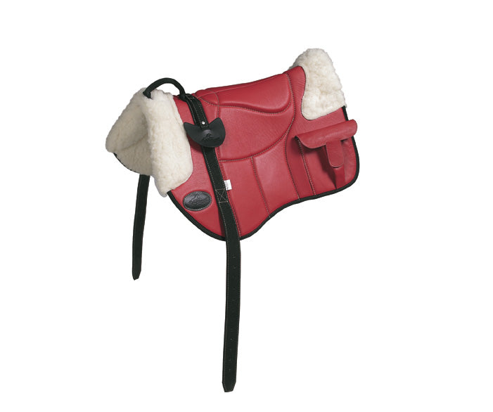 Bareback in pelle e lana con imbottitura in ovatta con tasche posteriori e maniglia.
